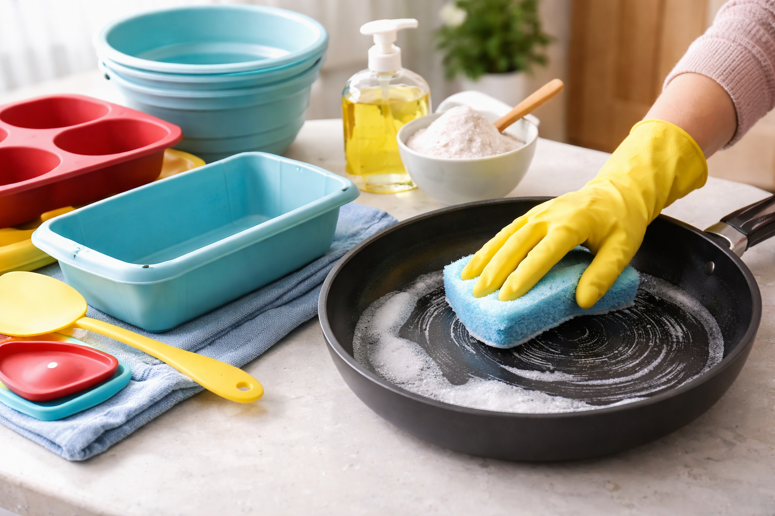 One of the most frequent issues arises from treating silicone and Teflon like stainless steel or ceramic. Hard sponges, steel wool, powdered cleaners, and baking soda pastes may seem effective, but they create microscopic scratches. These scratches are not always visible, yet they compromise the non-stick quality and allow residues to cling more stubbornly over time.
